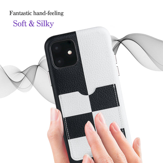 Cassenger Checkerboard Series Leather Case with Free Leather Cable Strap for iPhone 11